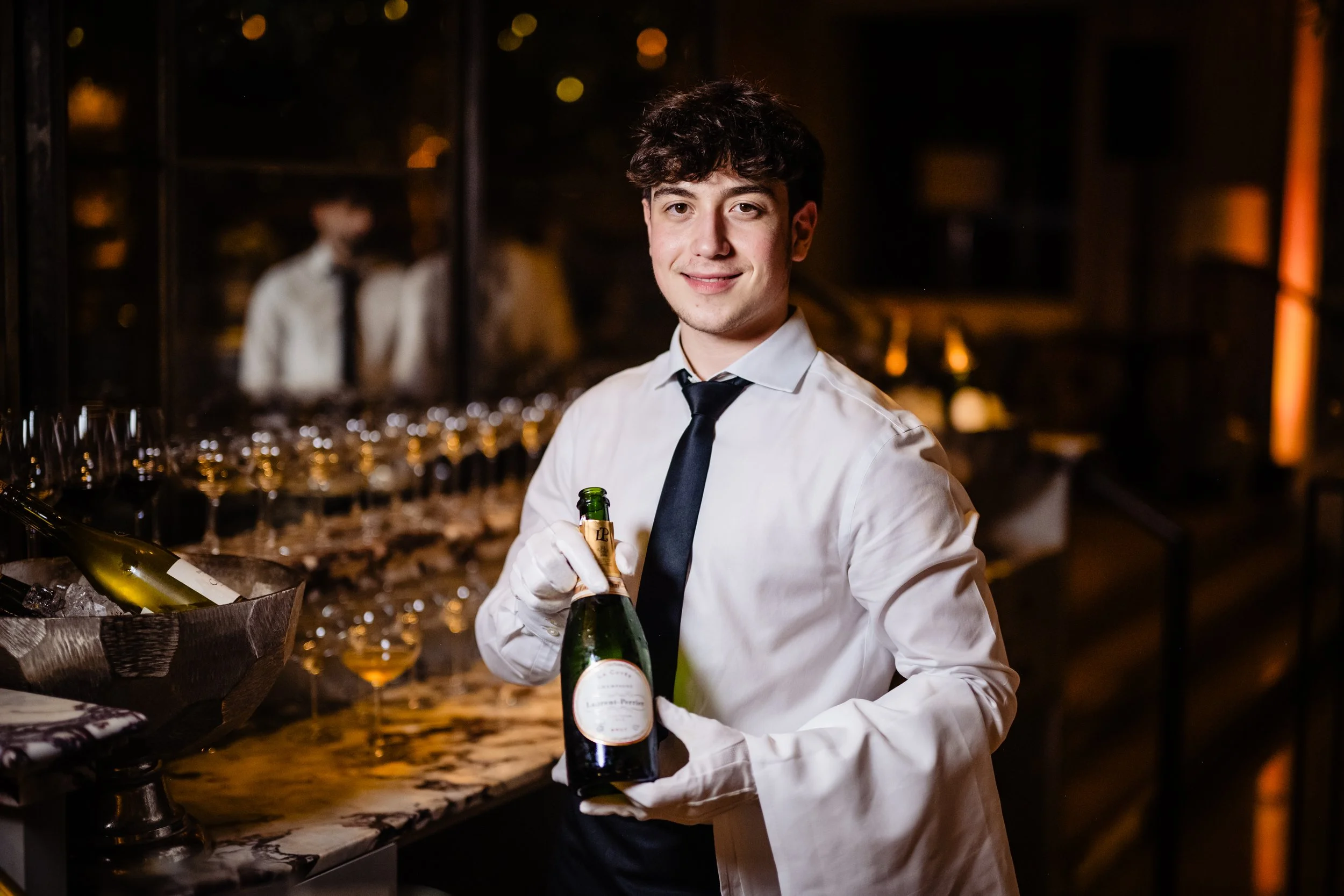 We planned this event meticulously for over a year working closely with Us3Events and the end client, so when the evening came around we were filled with excitement. As guests began to arrive into the stunning Palm Court Terrace at the Kimpton Fitzroy, our wonderful Shomer Shabbat waiters were ready and waiting with trays of Champage, whilst the bar focused on shaking up cocktails. The space was abundantly filled with food stations, where sushi chefs dazzled the guests with their live cooking and canapés were flowing out of the kitchen.